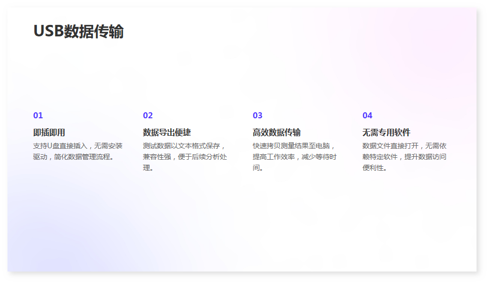 12·具備USB接口,可以支持U盤,將存儲好的數(shù)據(jù)文件拷貝到電腦。(數(shù)據(jù)文件是文本格式,不需要專用軟件即可打開)