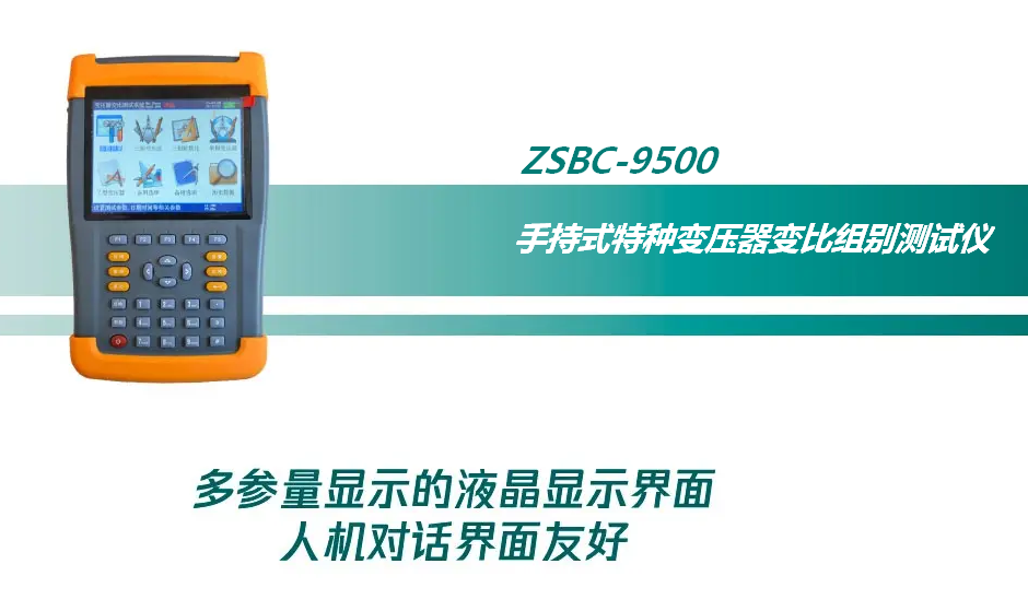 2、ZSBC-9500手持式特種變壓器變比組別測試儀內置大容量鋰離子充電電池,無需外接電源即可進行測試,現場方便易用。