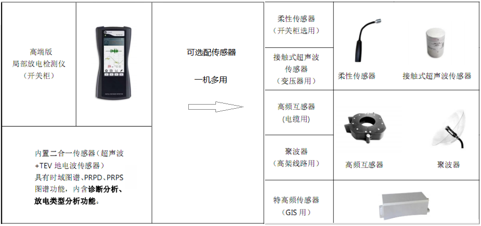 1、配置不同傳感器實(shí)現(xiàn)幾乎所有的高壓電氣設(shè)備的局部放電檢測(cè);