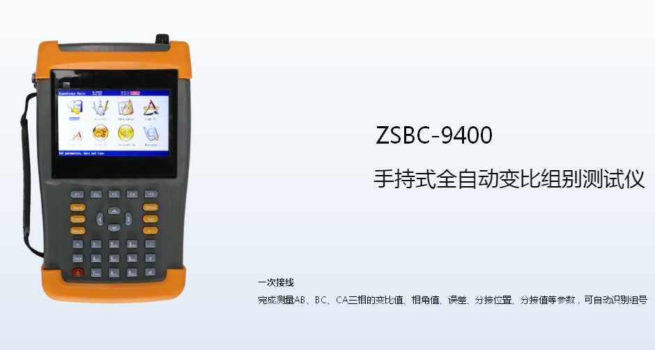 4·ZSBC-9400 手持式變壓器變比測試儀采用大屏幕真彩色液晶做為顯示器,全中文圖形化操作界面并配有漢字提示信息、多參量顯示的液晶顯示界面,人機對話界面友好,向量圖顯示及接線判斷為檢查電路的正確性提供了可靠的依據(jù)。