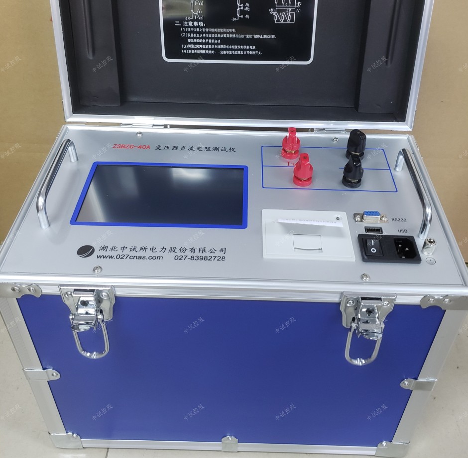 變壓器直流電阻是變壓器制造中半成品、成品出廠試驗、安裝、大修、改變分接開關(guān)后、交接試驗及電力部門預(yù)防性試驗的必測項目??梢詸z查繞組接頭的焊接質(zhì)量和繞組有無匝間短路,可以檢測電壓分接開關(guān)的各個位置接觸是否良好以及分接開關(guān)實際位置與指示位置是否相符,引出線是否有斷裂,多股導(dǎo)線并繞是否有斷股等情況。為了滿足變壓器直流電阻快速測量的需要,我公司研制的ZSBZC-40A變壓器直流電阻測試儀。