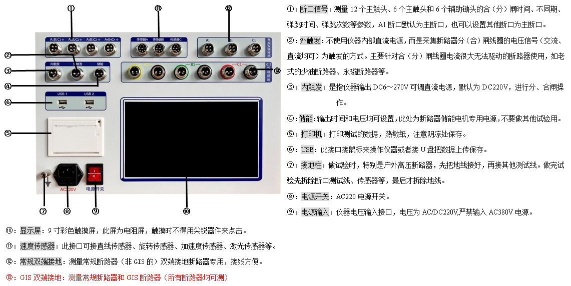 9、同時(shí)可測12路金屬觸頭斷口、6路主斷口和6路輔助斷口、1路速度(3路速度選配)。