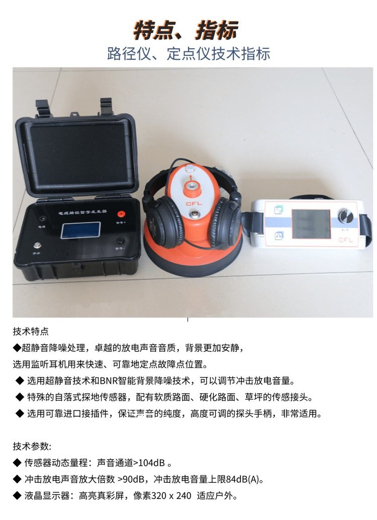 ① 超靜音降噪處理,卓越的放電聲音音質(zhì),背景更加安靜,選用監(jiān)聽(tīng)耳機(jī)用來(lái)快速、可靠地定點(diǎn)故障點(diǎn)位置。