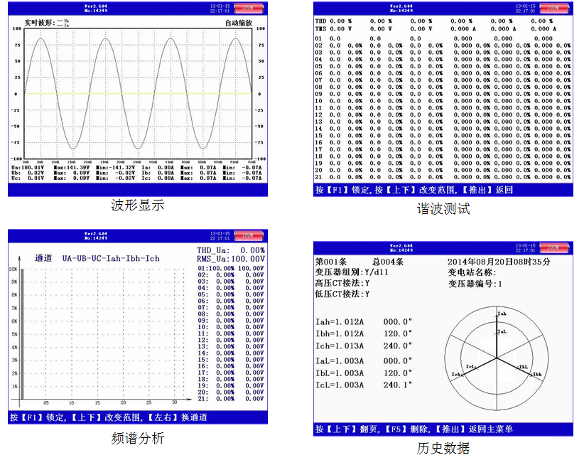 ④諧波含量測試功能:現(xiàn)場測試電壓和電流的諧波含量;