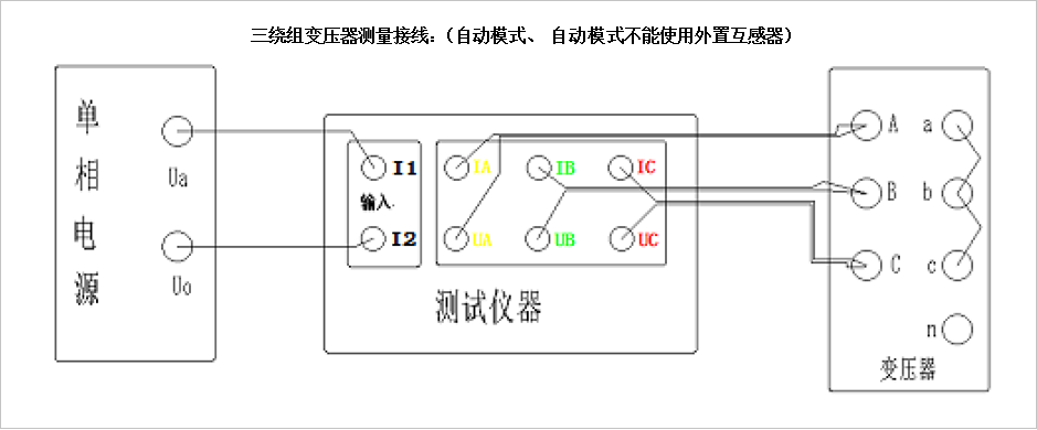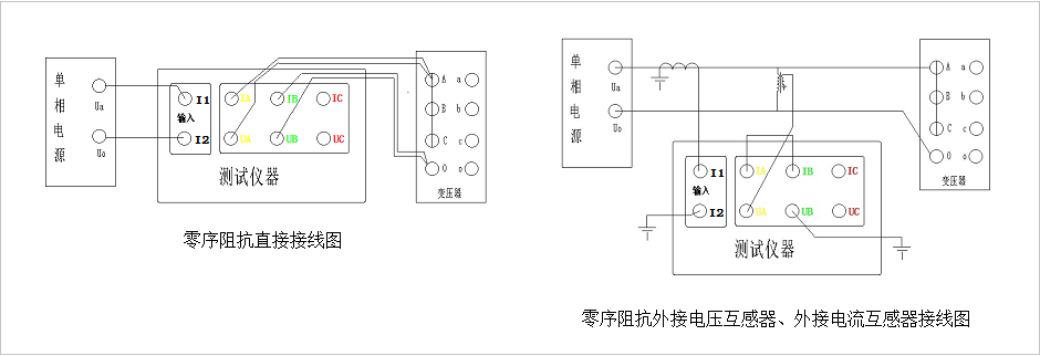 4.零序阻抗的測量:零序阻抗的測量適用于高壓側(cè)星形接線帶中性點的變壓器。