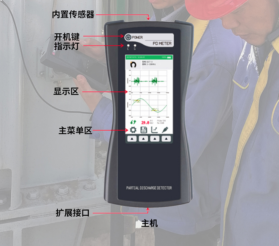 檢測主機(jī):內(nèi)置二合一傳感器(超聲波 +TEV地電波傳感器) |