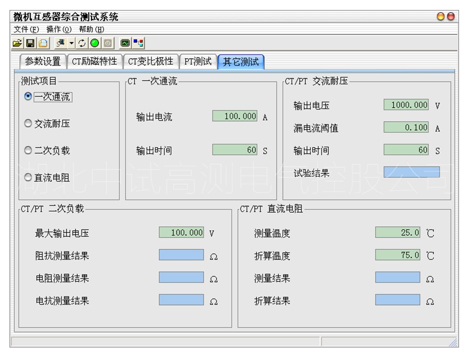 5、功能測試:CT/PT勵磁特性、CT/PT變比極性、CT/PT交流耐壓、CT一次通流、CT/PT二次負(fù)載、直阻測試。