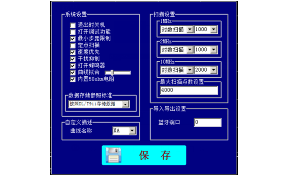 7、掃頻方式:線性或?qū)?shù),掃頻間隔和點數(shù)可任意設(shè)置