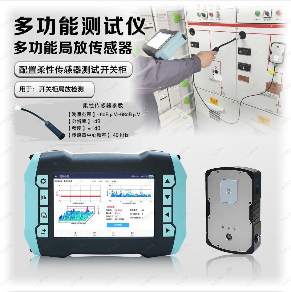 4、內(nèi)置超聲波傳感器和暫態(tài)地電壓(以下簡稱TEV)傳感器,可外接變壓器、GIS、架空線路、電纜等專用傳感器;