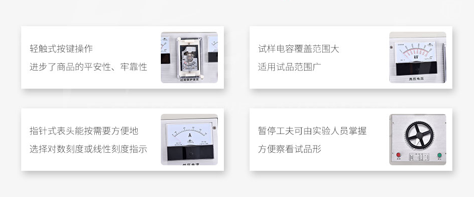 5、自動計時功用。自動控制時,當(dāng)電壓自動上升至設(shè)定值時,設(shè)備自動開端計時,當(dāng)計時工夫到,顯示實驗后果,設(shè)備自動回到零位。
